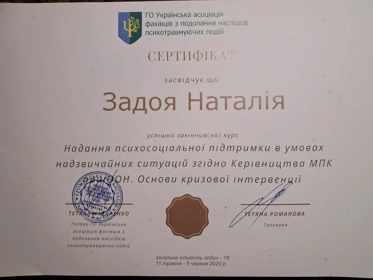 2001 - Дніпропетровський національний університет, фахівець-психолог